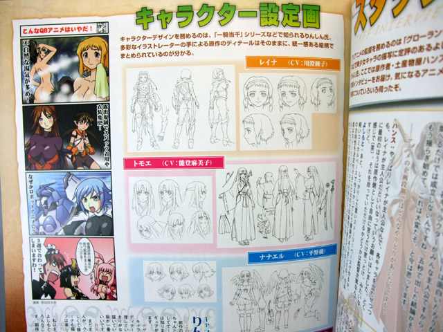 と告知されている通り、今月号では、製作スタッフ、キャストなどが公開された、アニメ「クイーンズブレイド 放浪の戦士」特集が掲載され、設定画などが掲載されています。
