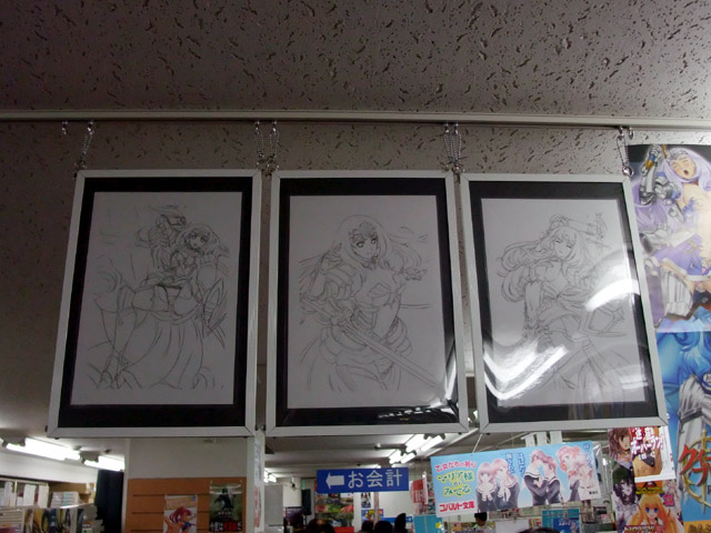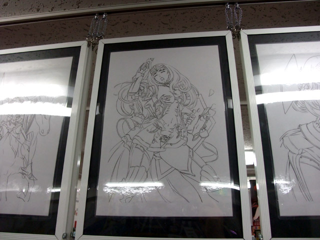 K-BOOKSでは、以前お伝えした通り、パンツキャラだったアンネロッテの発売記念として、えぃわ氏サイン会&抽選会も開催され、アンネロッテの線画も展示してました。