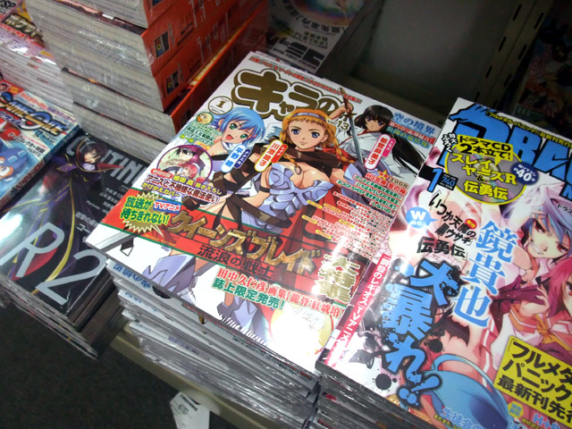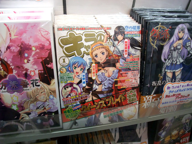 11月29日雑誌「キャラの! 2009年 1月号」が発売されました。今月号では、製作スタッフ、キャストなどが公開された、アニメ「クイーンズブレイド 放浪の戦士」特集が掲載され、設定画などが掲載されています。K-BOOKSでは、以前お伝えした通り、パンツキャラだったアンネロッテの発売記念として、えぃわ氏サイン会&抽選会も開催され、線画も展示してました。