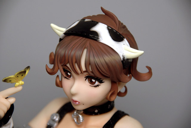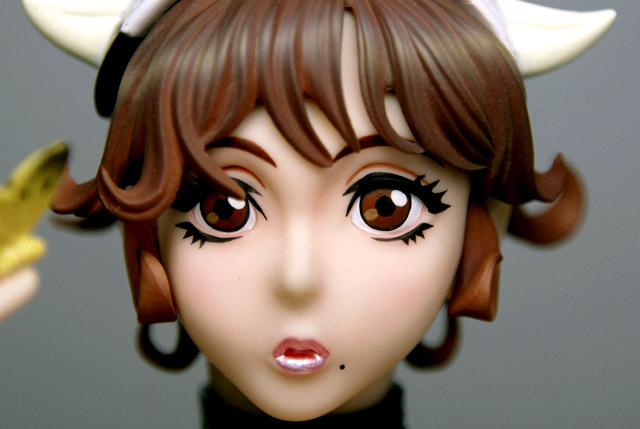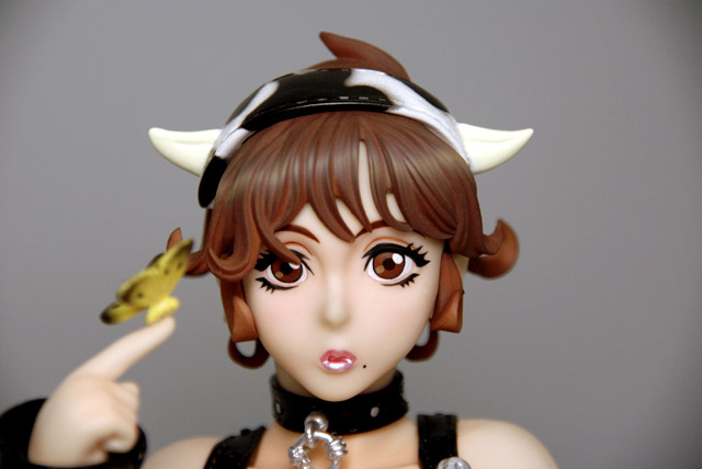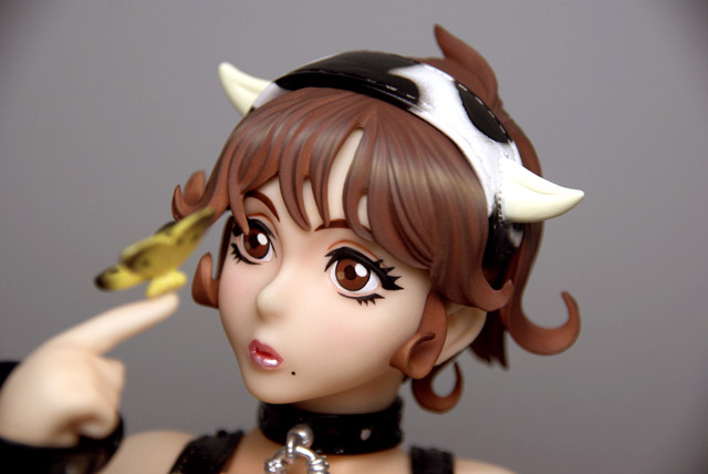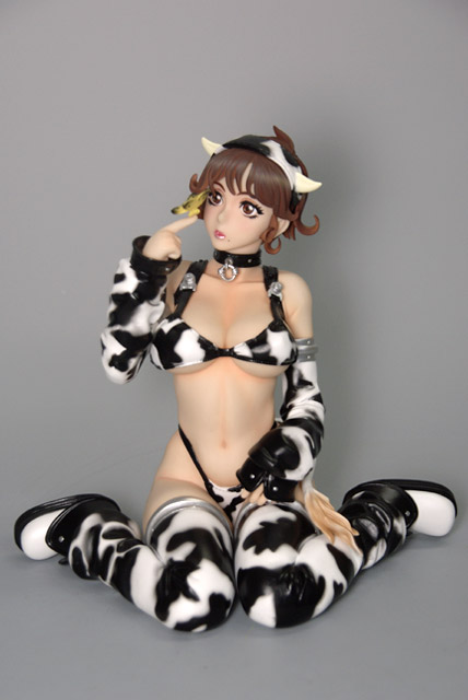 これは、メガハウスからも「エクセレントモデルCORE TSUKASA BULLET 02」(参考レビュー)が発売中の、司淳氏のオリジナルイラスト「ホルスタイン花子さん」を、コブラ会の唐詩郎氏が立体化したガレキを、顔など一部改修し、PVC完成品にするもので、ダイキ工業の商品説明によると、