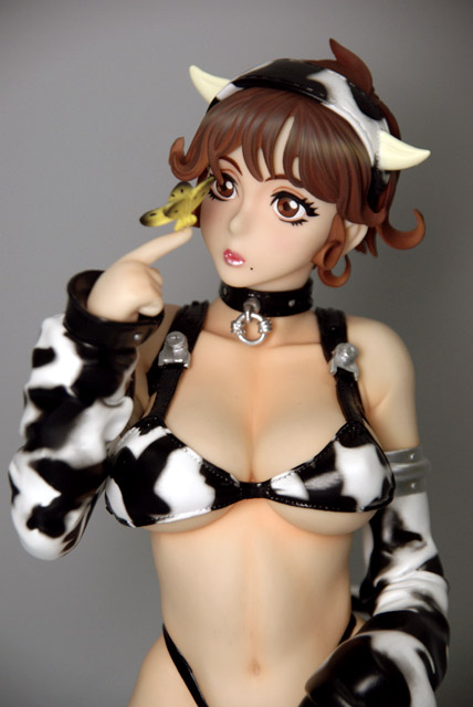 ダイキ工業「ホルスタイン花子さん」のPVC最終サンプルレビューです。これは、司淳氏のオリジナルイラストを立体化したもので、以前お伝えしたサンプルレビューの段階から、顔に司淳氏のペイント監修が加わり、主に眉の形状、目のパッチリ感、アイプリント形状などが変更されています。もちろん乳隠しを外したときのおっぱいインパクトは健在ですよ~!