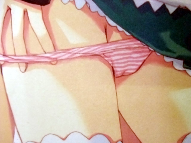 メロン2008年2月の交換テレカは縦スジにリボン食い込ませた縞パンメロンちゃん