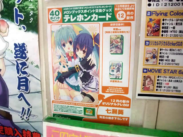 12月1日から、メロンブックスのポイント交換グッズとして、七瀬葵氏がイラストを担当されている、交換テレカの絵柄が公開されています。イラストは、一見じゃれあうメロンちゃんとブラックれもんちゃんの可愛らしいイラストですが、下の方に目をやると、ブラックれもんちゃんの手が、メロンちゃんのパンツをこっそりずり下げていました! スージーさんもありますよ?w