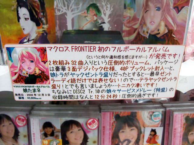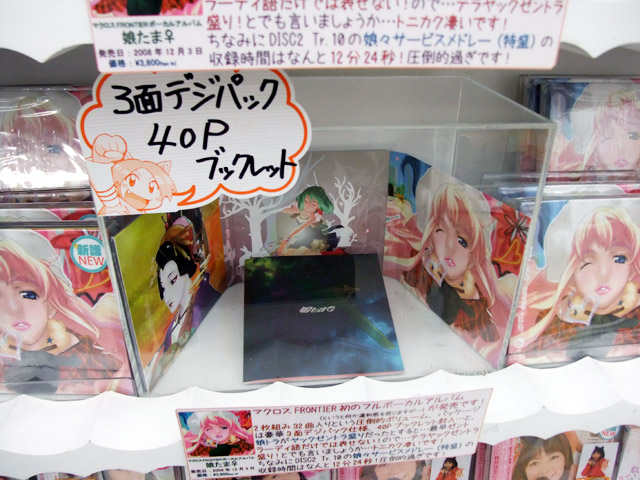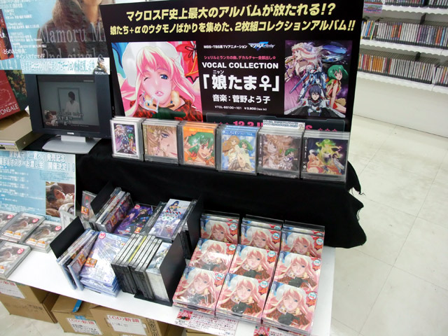12月2日、CD「マクロスF ボーカルコレクションアルバム 娘たま♀」が発売されました。これは、商品説明によると『娘たち+αのウタモノばかりを集めた、豪華2枚組みコレクションアルバム』というもので、とらで掲示されていたPOPでは『テラヤックゼントラ盛り!』『娘々サービスメドレー(特盛)の収録時間はなんと12分24秒!圧倒的過ぎです!』とかかれていました。