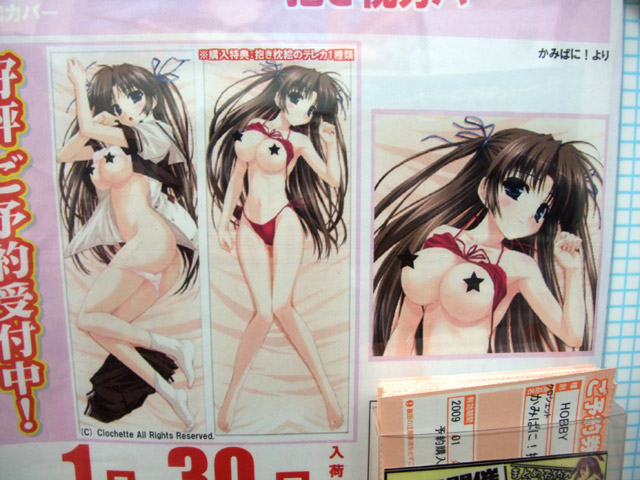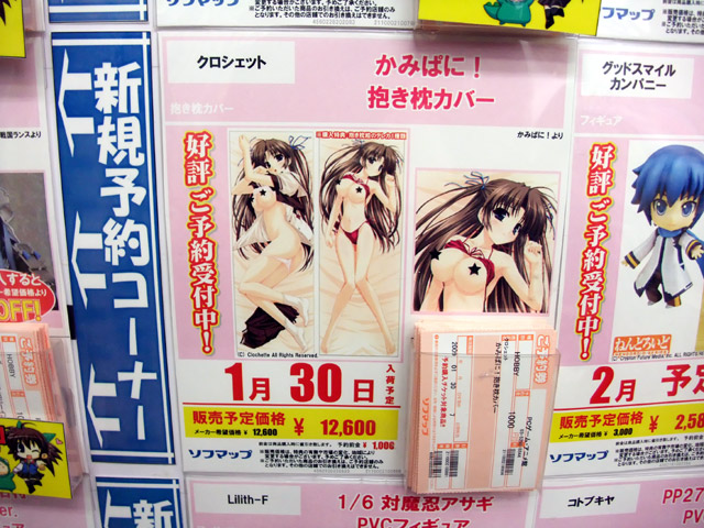 ソフマPCアニメ館週間ランキングTOP10 (11/24~11/30付)で6位にランキングされていた、クロシェット「かみぱに! 片瀬恵 抱き枕カバー」のサンプルイラストが、ソフマップAM館で公開されています。確認したところ、イラストは両面とも乳首丸出しのようですw 他、「痛車 クラナド アフターストーリー宮沢限定」発売、新作フィギュアのサンプル/キャストオフ展示等。