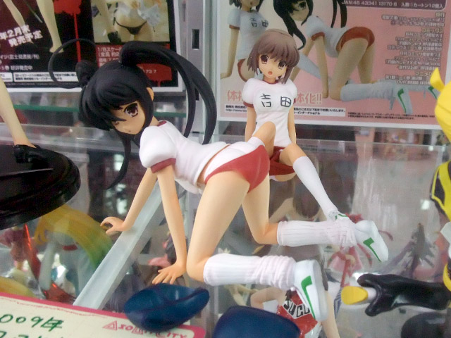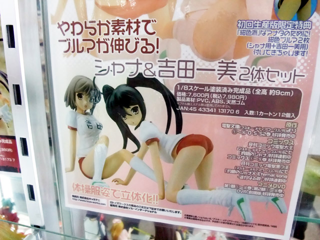 これは以前、キャラホビ2008のメディアワークスブースでの展示もお伝えした、「灼眼のシャナII」のキャラ「シャナ」と「吉田一美」を、掲示されていたPOPにもあるように、柔らか素材で脱がせるブルマの仕様のPVCフィギュアセットで、あみあみの商品説明によると