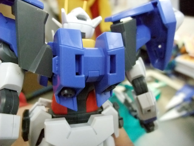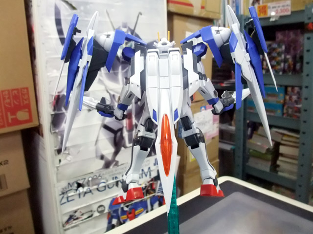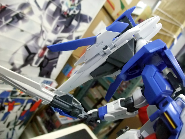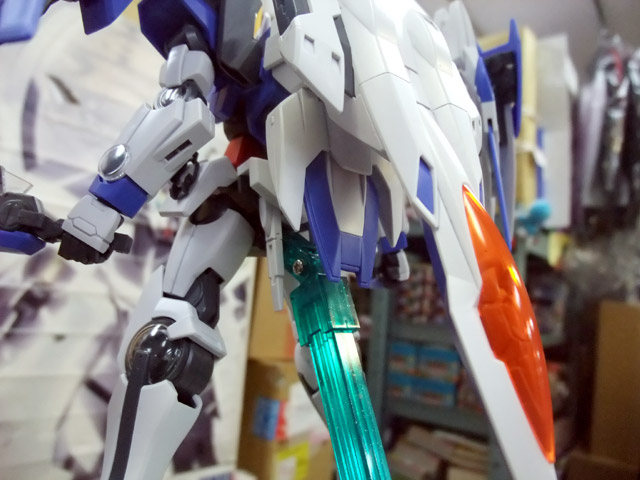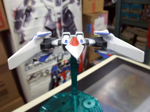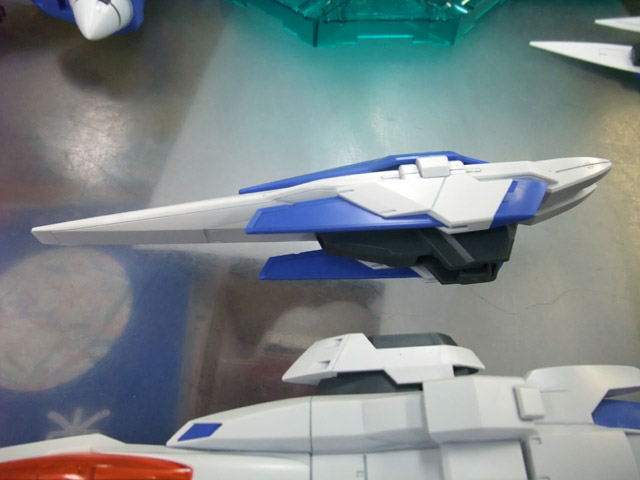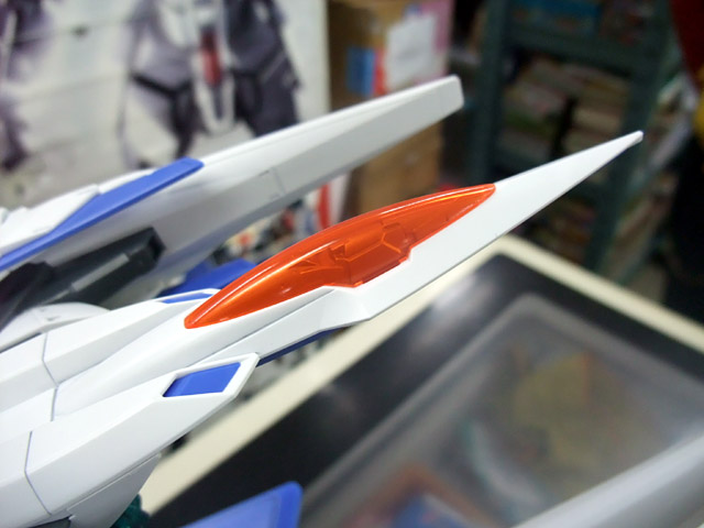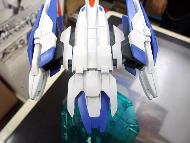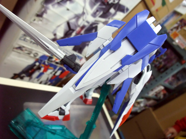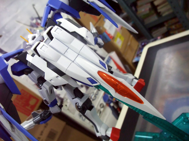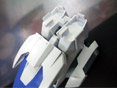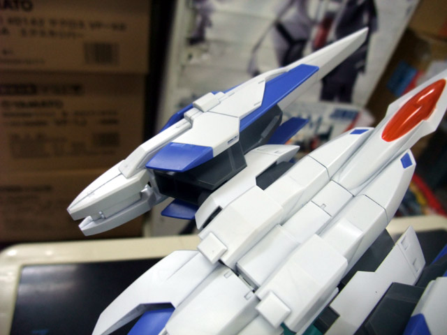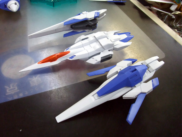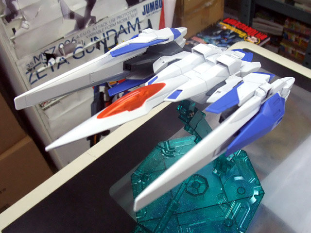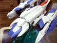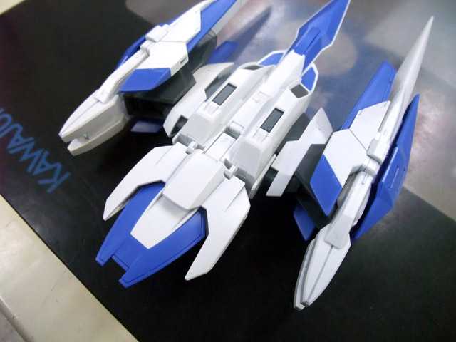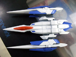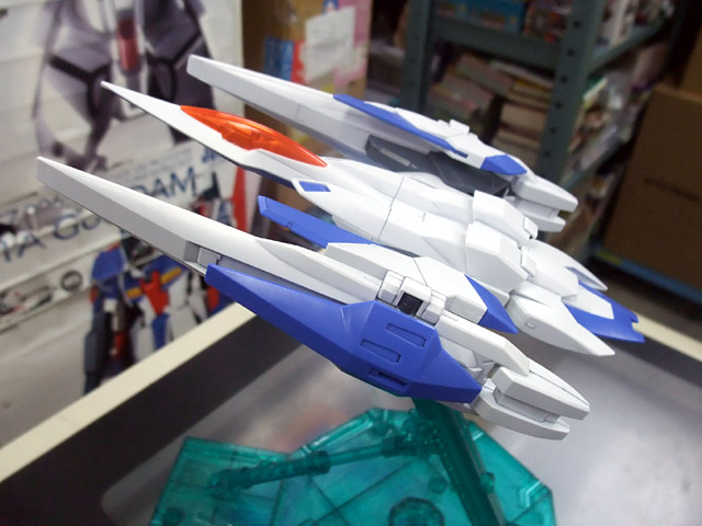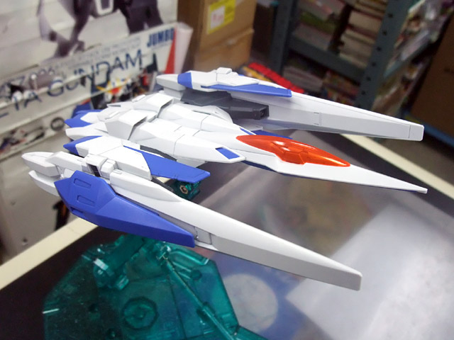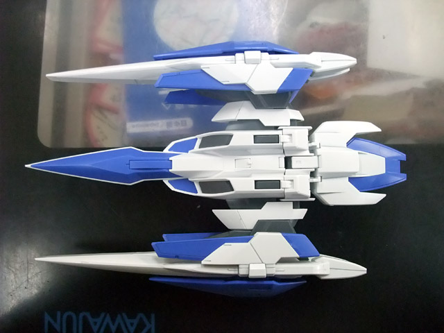 この部分を「1/100 ダブルオーガンダム」の背中のダボ穴と組み合わせて装着し、肩に変形した主翼を取り付けると・・・