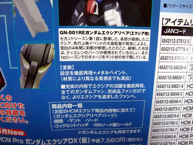 キャラシティにて、2009年3月発売予定のバンダイ 機動戦士ガンダム00 SUPER HCM Pro ガンダムエクシアの「通常版」、「DX版」の告知POPを見せて頂きました!これは、「ガンダムエクシア」を1/144サイズのハイコンである「SUPER HCM Pro」にするもので、DX版には、00 2ndの第1話で登場した「ガンダムエクシアリペア」にするためのパーツが付属。