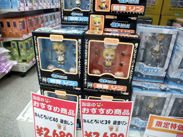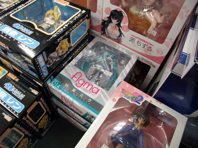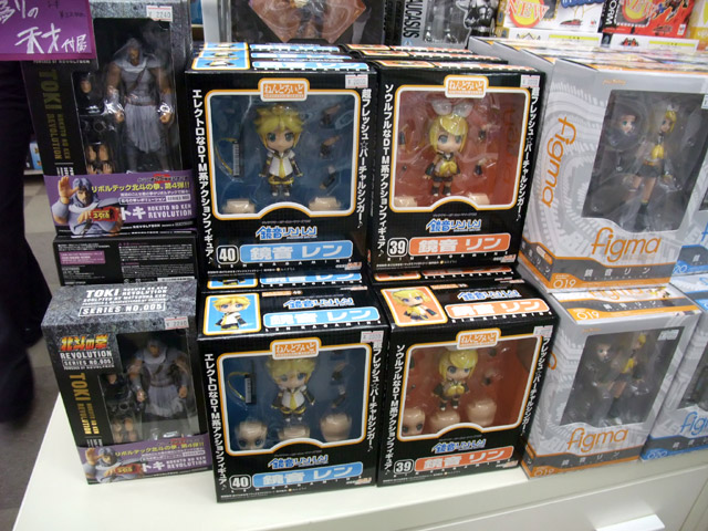 12月9日、9月に発売された、マックスファクトリー「figma キャラクター・ボーカル・シリーズ01 初音ミク」と、11月に発売された、グッドスマイルカンパニー「ねんどろいど 鏡音リン/レン」3種の再販分が、アキバの各店に入荷していました。「figma 初音ミク」は、ネットでは再販分もほぼ完売状態で、アキバでも店頭を見る限りでは、絶対数は少なめな印象でした。