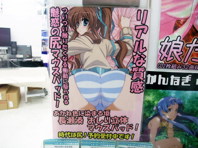 とらのあな本店1Fにて、エイベックス「あかね色に染まる坂 長瀬湊 おしり立体マウスパッド」の予約受付が開始されていて、サンプルイラストも公開されています。これは、いわゆるおっぱいマウスパッドの絵柄を、ケツ突き出しポーズのものにして、旧来乳部分のふくらみを再現していた部分を、ケツの立体再現に使用したもの。とらのPOPには「時代は尻!」ともw