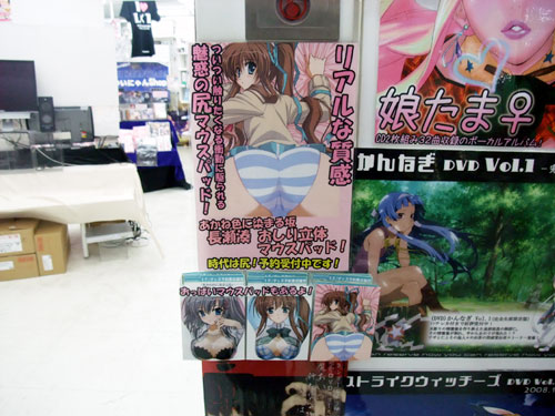 ちなみに、おしり立体マウスパッドはこれが初というわけではなく、コミケ74にて、アキ★コレが、「[Clear]行野無月 プリプリ★お尻マウスパッド」、ドワンゴブースで「ペンギン娘のお尻マウスパッド」等が販売されていました。