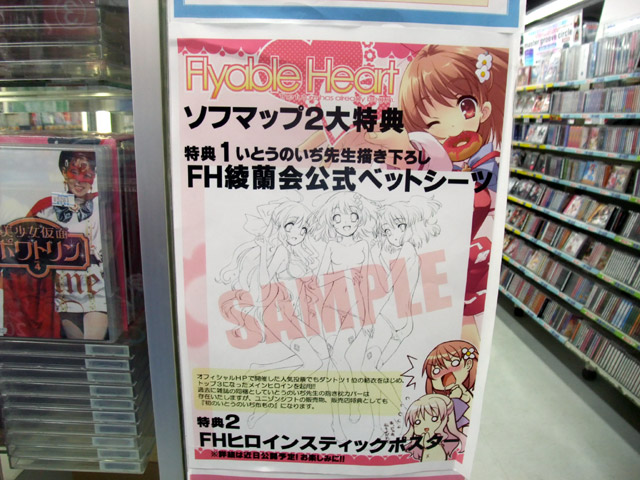 ユニゾンシフトのエロゲPCソフト「Flyable Heart 初回限定版」が、2009年1月23日発売予定となっています。ソフマップAM館では、ショップ特典となる「ベッドシーツ」のラフイラストが公開されていました。POPによると、ショップ特典初の「いとうのいぢ布もの」となるようです。他、マックス「快盗天使ツインエンジェル 水無月遥/葵」発売等をまとめてお伝えします。
