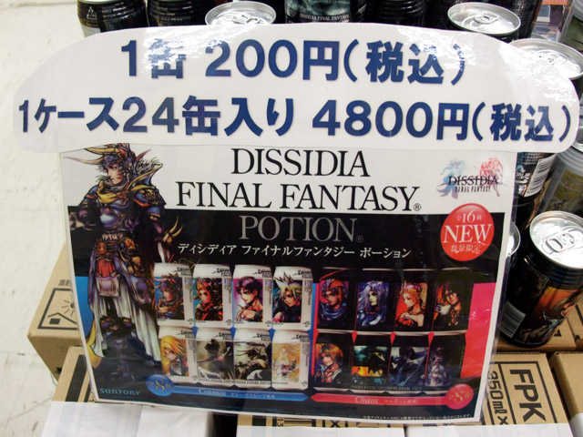 これは、12月18日発売予定のPSP「DISSIDIA FINAL FANTASY」の発売を記念した飲料で、コスモス8種、カオス8種の合計16種類のデザインの缶があります。