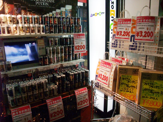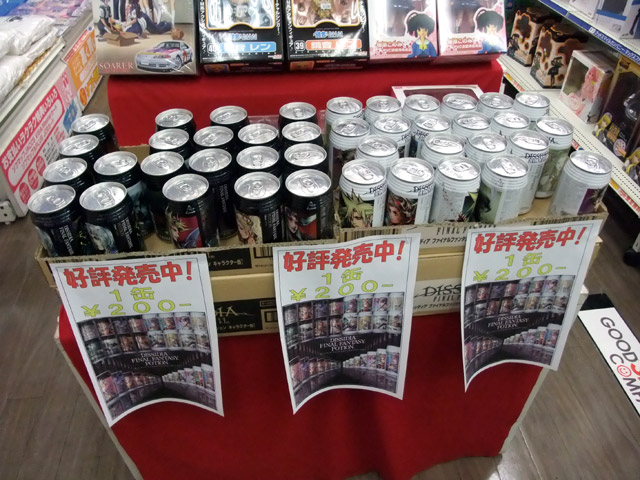 ちなみに、画像中央の「クラウド&セフィロス缶」は、ばら売りではほとんど見かけなかったので、一番売れている絵柄なのかも?