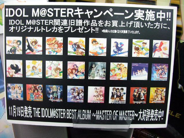 ゲームシティでは大きく展開されていて、POPによると『IDOLM@STERキャンペーン実施中!!IDOLM@STER関連旧譜作品をお買い上げ頂いた方に、オリジナルトレカをプレゼント!!』とのことでした。