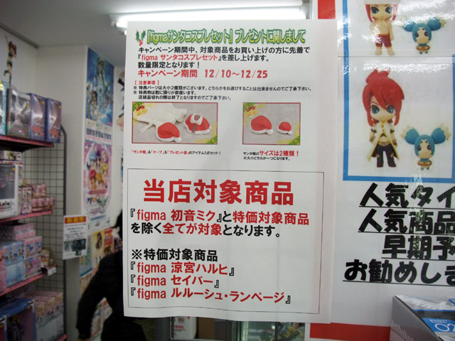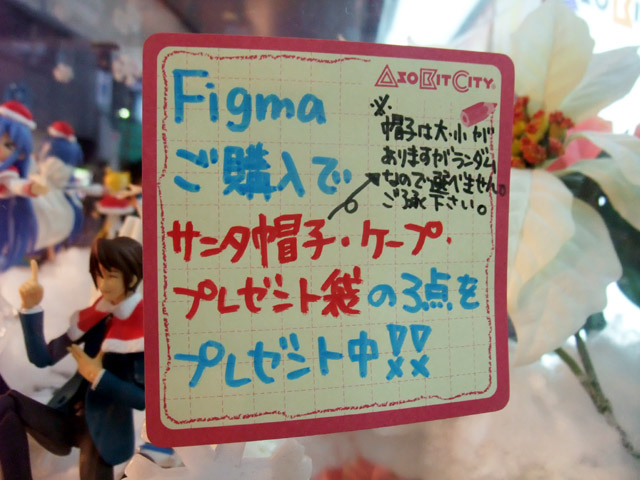12月10日、以前告知展開をお伝えした、figmaを買うと、figma用のサンタコスプレセットがもらえる「figmaクリスマスキャンペーン」がアキバで開始されました。