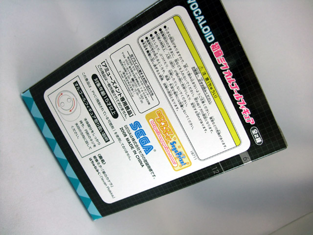 セガプライズ「VOCALOID 初音ミク オルゴールフィギュア」のパッケ表裏と側面。