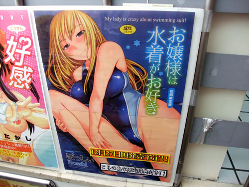 初単行本の「水着彼女」が1年で第16刷まで記録更新され、アニメ化も決定している、ぼっしぃ氏の大人向けコミック新刊「お嬢様はHがお好き 初回限定版」が12月27日発売予定という告知POPが、とらのあな1号店にて掲示開始されていました。掲示されていたのは、付属する小冊子の表紙と思われる水着のお嬢様イラストと、その裏表紙と思われるイラストの全2種。