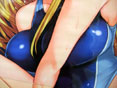 むっちりとした乳に、競泳水着が食い込んだ股間が、ぼっしぃ氏独特の「ぴっちりエロス」を感じさせてくれますね~!
