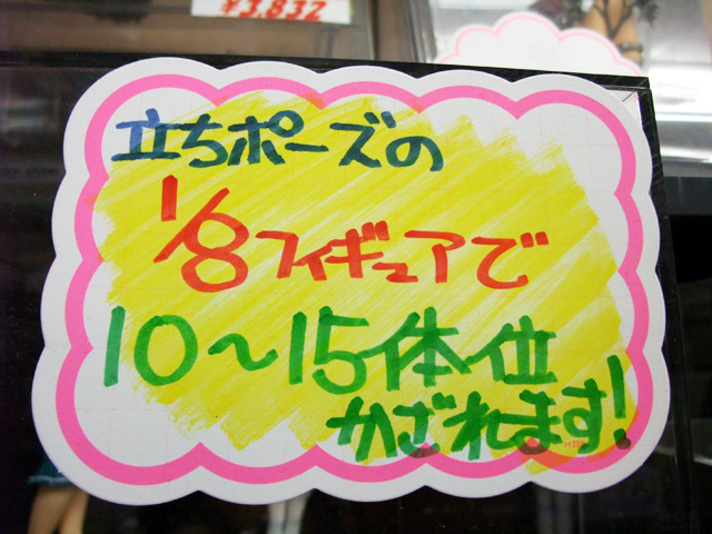 POPには、『業務用の幅90cmの棚にピッタリ収まります。』『立ちポーズの1/8フィギュアで10~15体位飾れます!』と書かれていました。