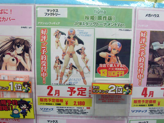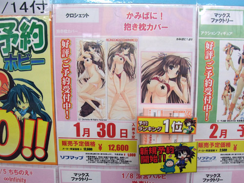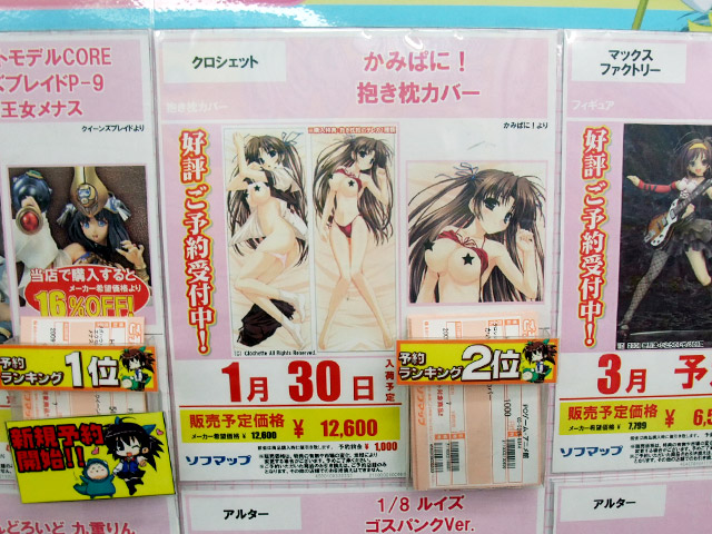ソフマップ秋葉原PCゲーム・アニメ館の週間フィギュア予約ランキング12/8~12/14付分をお伝えします。今週の1位は、先々週6位、先週2位と、こっそり着実にランクアップしていた、「かみぱに! 抱き枕カバー」がついに1位となりました!ソフマ限定とはいえ、すごい勢いですね・・・。他、2位には初登場の「figma 桜姫(原作版)」、3位はメガハウス「メナス」でした。