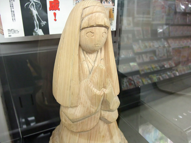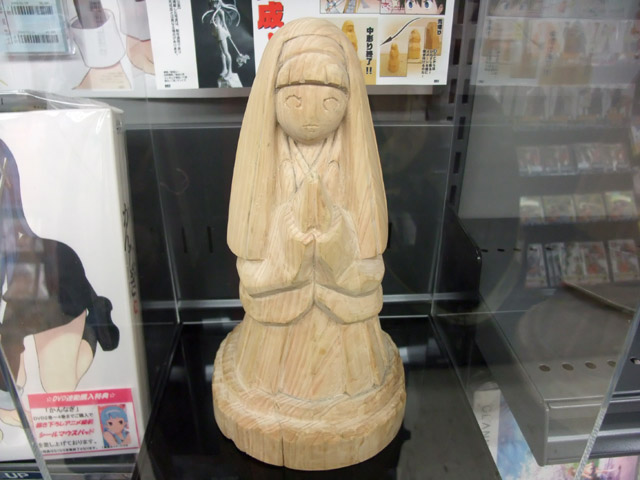 ゲーマーズ本店では、ナギの依代である、本物の木製の「仁がご神木を彫って作った精霊像」も展示されていました。