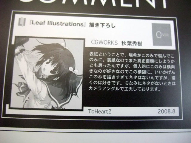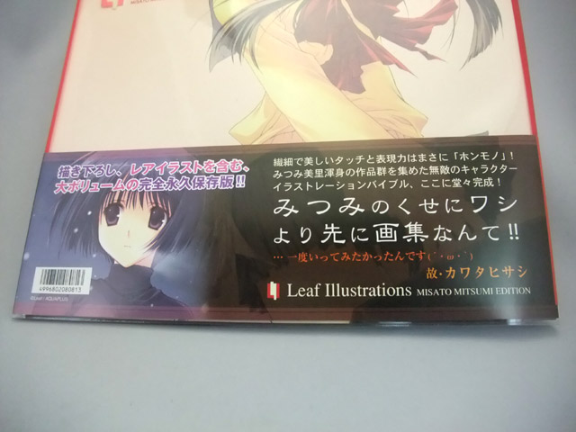 12月19日、画集「1998-2005 Leaf Illustrations みつみ美里EDITION」が発売されました。これは、2007年4月に発売された、「甘露樹EDITION」同様、コミケ74で販売されたものを一般販売するもの。とらのPOPでは【『この中に俺の嫁がいる!』】【画集用の描き下ろしや未公開のイラストを含む大ボリュームな内容です!】とのこと。メインはこのみと瑞希。