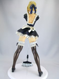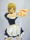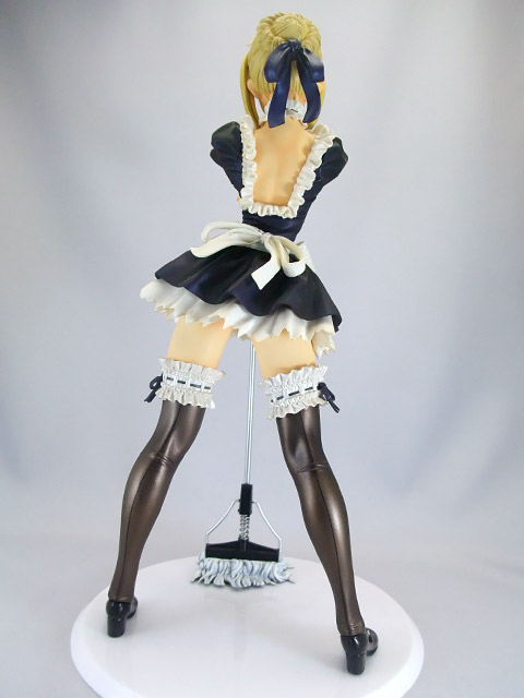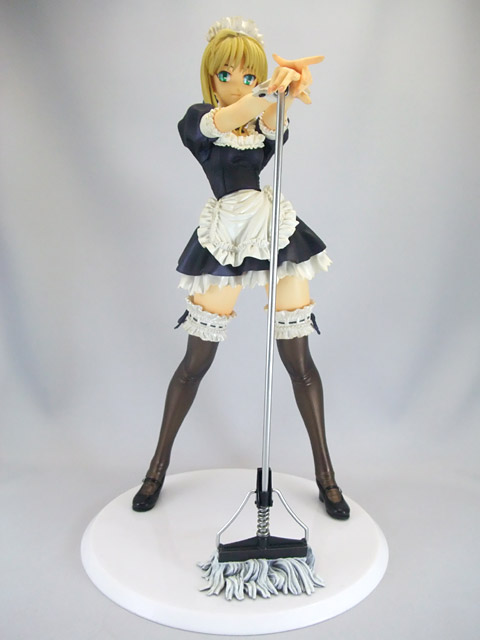 武器ならぬモップに両手を置いた勇ましい立ち姿が愛らしいイメージを高める。セイバー特有の細身の泰慶ながらも、倉本造型らしい肉感的で柔らかな表現により、繊細な色香漂う雰囲気をお楽しみ下さい。