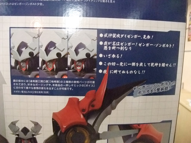 ゼネラル・ブラスター部分には発光ギミックが、そして今回の目玉としてあのゼンガー・ゾンボルトが叫ぶボイスギミックも搭載されております!!!また、パッケージイラストはダイゼンガーのデザイナー、安藤弘(バンプレソフト)の描きおろしとなります!!