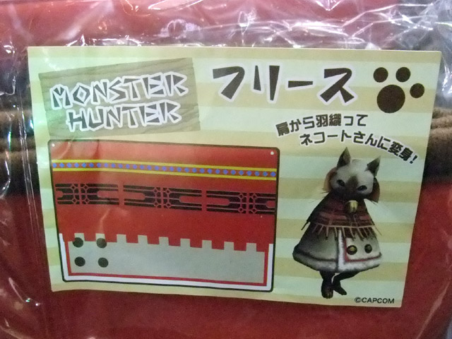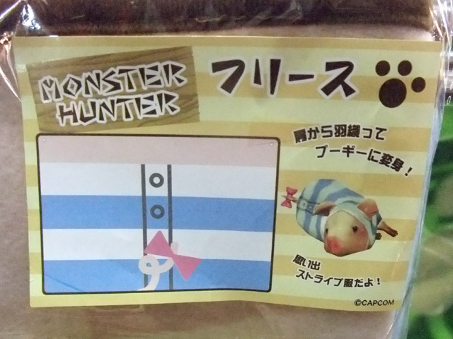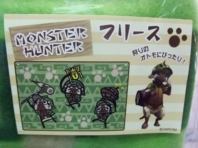 ケイカンパニー モンスターハンター フリース「オトモアイルー」(AA)、「ネコートさん」(AA)、「プーギー」(AA)、「大剣」(AA)。