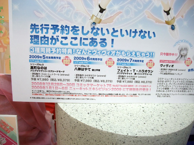 先行予約は前述の通り、12月28日~30日開催の「コミックマーケット75」と、2009年01月01日~06日開催のボークスイベント「New Kit Exhibition 2009」にて受け付けるようです。