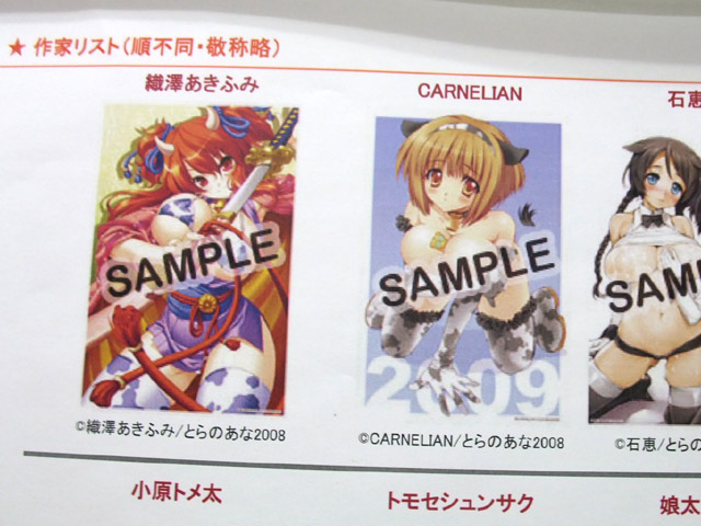 新年を飾るとらのあなオリジナル年賀状が登場!2009年の干支は「牛」その「牛」を題材に豪華イラストレーター達が競演!可愛い物からちょっとエッチな物まで各種取り揃えた10枚の年賀状は必見です!友達に送るのも良し!手元に置いて保存するのも良し!新年をこの年賀状と共に迎えちゃおう♪