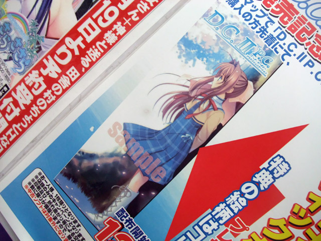 他、ソフマップでは同じく26日から、エロゲPCソフト「D.C.II P.C. プラスコミュニケーション 初回限定版」(価格は税込10,290円)の発売を記念して、「朝倉音姫オリジナルスティックポスター」が先着でもらえるみたいです。