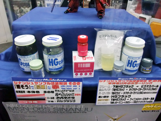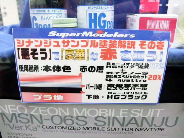 そのサンプルの下には、塗装に用いられた材料がおかれ、『「悪そう」で「豪華」な赤』とかかれたPOPには、塗装レシピが書かれていました。