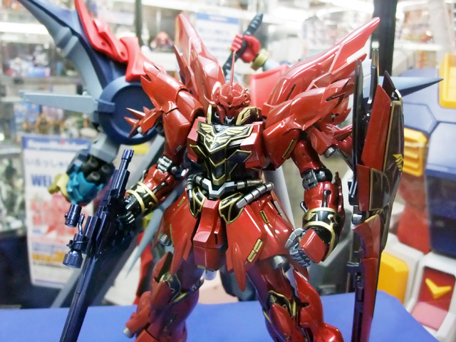 12月25日、バンダイ「MG 機動戦士ガンダムUC シナンジュ Ver.Ka」が発売されました。これは、以前サンプルフォトレポートもお伝えした、「ユニコーンガンダム」のライバル機「シナンジュ」を、同じくカトキハジメ氏プロデュースでプラモデルにしたものです。スーパーモデラーズでは「悪そう」で「豪華」な赤の塗装という、作例の展示もされていました!