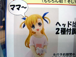 この「ヴィヴィオ」は、前述の通り、12月28日~30日開催の「コミックマーケット75」と、2009年01月01日~06日開催のボークスイベント「New Kit Exhibition 2009」にて開催予定の、「なのは」「はやて」「フェイト」3体同時先行予約キャンペーンのプレゼント品で、対象者にはフェイトの引き取り時に同時に受け取り(発送)するとのことです。