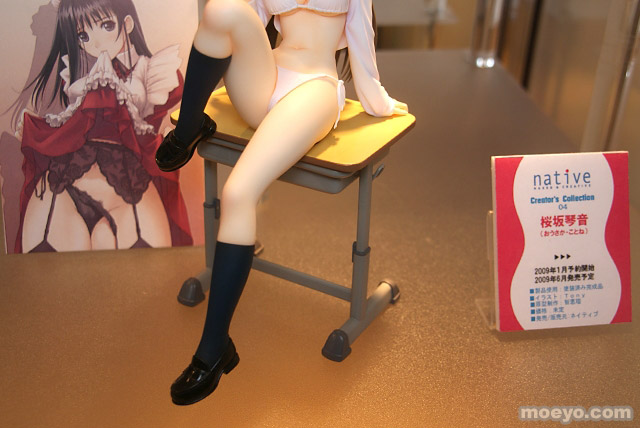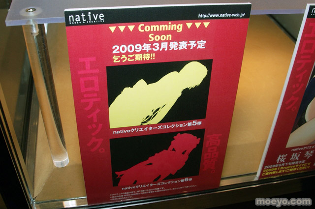 コミックマーケット75のネイティブブースでは、新作の「クリエーターズコレクション04 桜坂琴音」のデコマスの展示をはじめとする、フィギュアのサンプル展示と、「人妻巫女SAYURI 抱き枕カバー」の販売などが行われていました。そんなネイティブブースの様子を、左の画像の「クリエーターズコレクション04 桜坂琴音」のサンプルを中心にお伝えします。