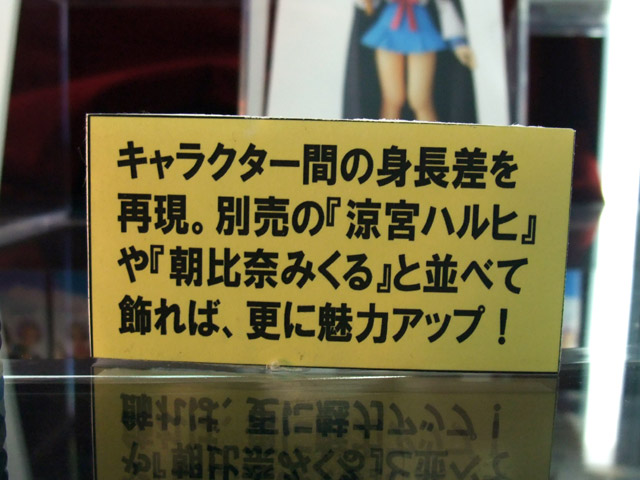 POPによると【キャラクター間の身長差を再現。別売りの『涼宮ハルヒ』や『朝比奈みくる』と並べて飾れば、更に魅力アップ!】とのことです。