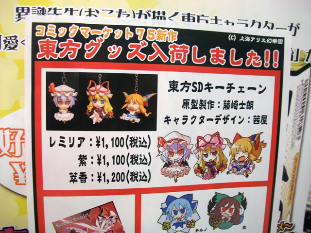 とらのあなでは、コミックマーケット75で販売されたりした、ピンクカンパニー/パルテノンプロダクションの「東方グッズ」(AM)等が大量に入荷していました。
