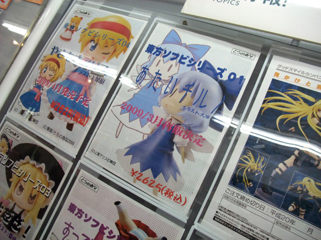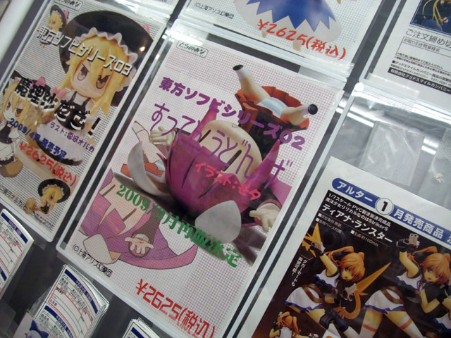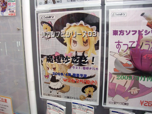 他、とらのあな「東方ソフビシリーズ」 【コミケ75レポ】でお伝えした、とら専売のとらのあな 東方ソフビシリーズ「03 魔理沙だぜ!」、「04 やきもきアリス」、「01 あたいチルノ(再販)」、「02 すってんうどんげ(再販)」の予約が開始していました。