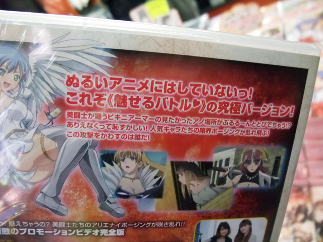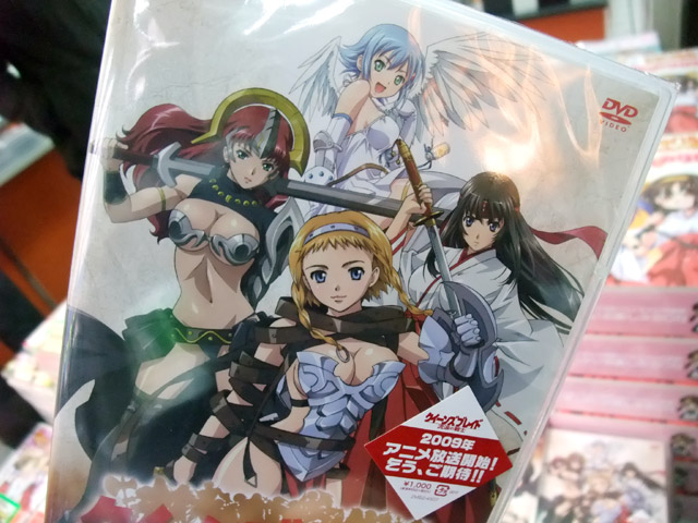 2008年12月31日~2009年1月3日まで、アキバ巡回をお休みさせて頂きました。その間に発売されていたものなどをまとめてお伝えします。画像は、開始32秒で乳首の、DVD「クイーンズブレイド 流浪の戦士 零巻」。他、コミック「らき☆すた×涼宮ハルヒちゃんの憂鬱」等もでていました。また、スーパーモデラーズが、2月1日で閉店となるそうで、店頭に告知が出ていました。