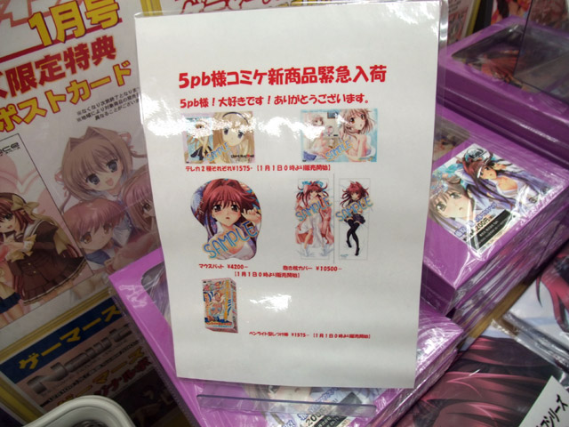 ゲーマーズ本店では、5pb.inc.のコミックマーケット75アイテムが販売開始していました。