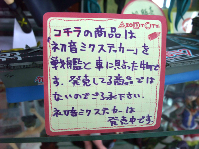 キャラシティでは、「初音ミクステッカーを戦艦と車に貼った物」のサンプルも展示されていました。