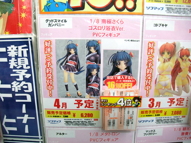 ソフマップ秋葉原PCゲーム・アニメ館の週間フィギュア予約ランキング2008/12/29~2009/1/4付分をお伝えします。