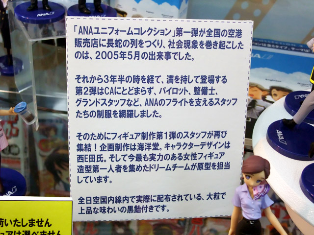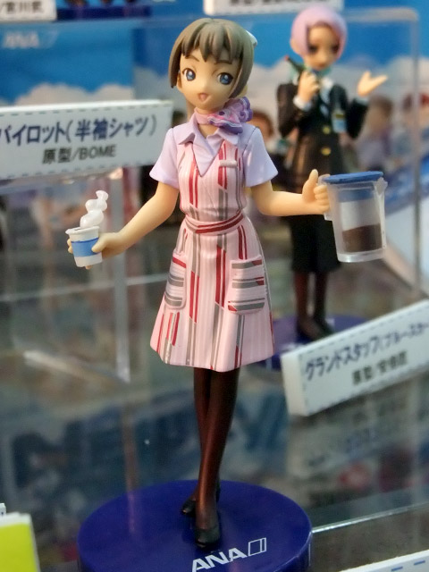 海洋堂製作の「ANA ユニフォームコレクション 第2弾」が、1月7日から販売開始となります!これは、2005年5月に発売された第1弾(参考レビュー)に続く、実在するANAのユニフォームを、西E田氏キャラデザのキャラに着せて立体化したトレフィです。今回はその「ANA ユニフォームコレクション 第2弾」の、海洋堂ホビーロビーでのサンプル展示の様子をお伝えします。