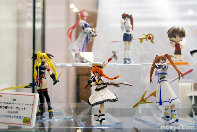 2008年12月28日~30日開催のコミックマーケット75のYujinブースでは、画像のフェイトなどがラインアップのガチャ「SR 魔法少女リリカルなのはStrikerS part3」や、「SRDX ひだまりスケッチ 宮子&吉野家先生」、「鉄道むすめ リトルマスコット」等の、今後発売される新作フィギュアや、「シューティングゲームヒストリカ3」の告知POPなどが展示されていました。