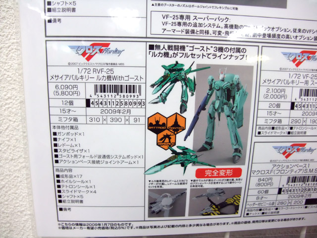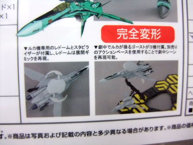 バルキリー本体はもちろん、完全3変形!ルカが操るゴースト3機付属。ゴースト専用のスタンドも付属。頭、胸部、肩部、背中、腕部武装などルカ機の設定を忠実に再現!特徴的なレドームは展開ギミック搭載。