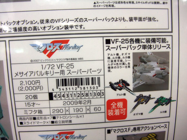 マクロスF 1/72 VF-25 メサイアバルキリー用 スーパーパーツ