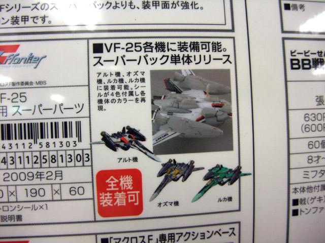 アルト機、オズマ機、ルカ機に装着可能。シールが4色付属し各機体のカラーを再現。