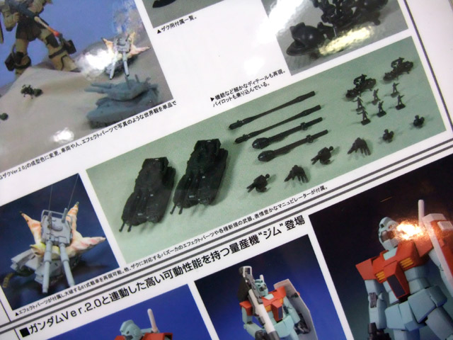 ヒート・ホーク×1、シュツルム・ファウスト×2、ロケット・ランチャー×1、ザク・バズーカ×1、クラッカー×2、右オプションハンド×2、左オプションハンド×2、ザク・バズーカ用エフェクトパーツ×2、ワッパ×2、61式戦車×2、61式戦車用爆発エフェクト×2、1/144連邦/ジオン兵×計8体付属。